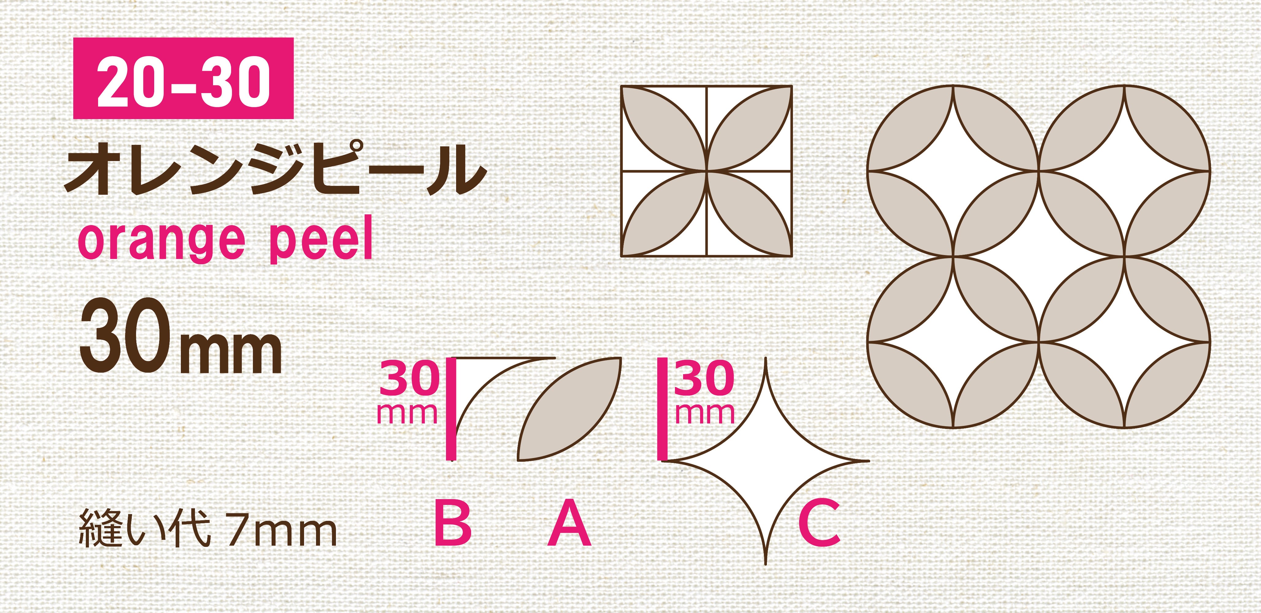同じ形・サイズのみで作るワンパッチキルトだけでなく、パッチワークパターンの広がり・組み合わせをお楽しみいただけます。
